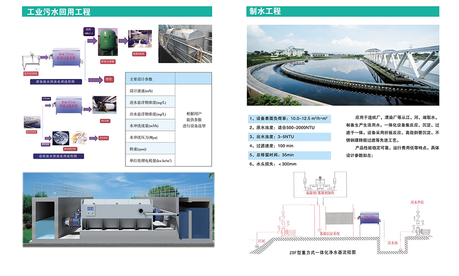 設(shè)備為連續(xù)過濾,當(dāng)滾筒內(nèi)有水進(jìn)入時(shí),自控系統(tǒng)將啟動(dòng)驅(qū)動(dòng)系統(tǒng)驅(qū)動(dòng)滾筒轉(zhuǎn)動(dòng),同時(shí)啟動(dòng)反沖洗泵。滾筒開始緩慢轉(zhuǎn)動(dòng),反沖洗泵抽取濾后出水對(duì)濾網(wǎng)進(jìn)行反沖洗。沖洗下來的顆粒物質(zhì)由設(shè)備內(nèi)部的反沖洗水收集槽收集,并通過排污管排出設(shè)備。反沖洗的同時(shí),過濾正常運(yùn)行。當(dāng)無水通過設(shè)備時(shí),設(shè)備將自動(dòng)停止。